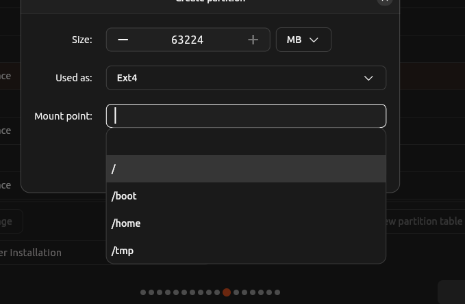 Mount point selector (/ , /home, swap, etc.)