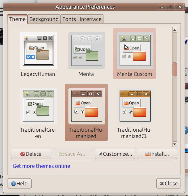The essence of TraditionalHumanized theme is that it reproduces classic Human gtk2 theme colors, uses Humanity icon set and features dimmed background colors. It does not kill eyes.
