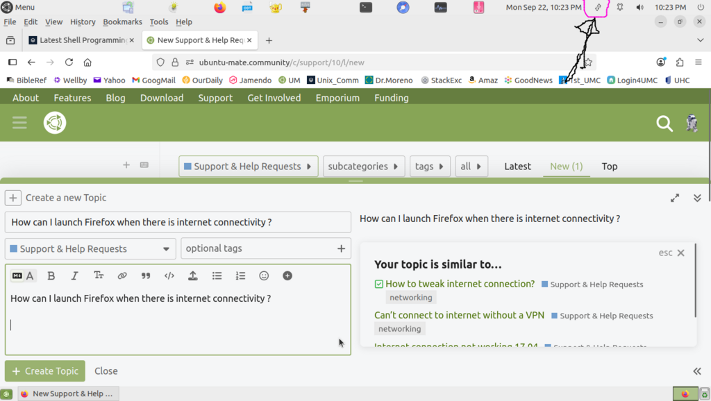 I use a different Icon set, what are you trying to show us, the network is connected or the network is down with your drawing to your top panel?