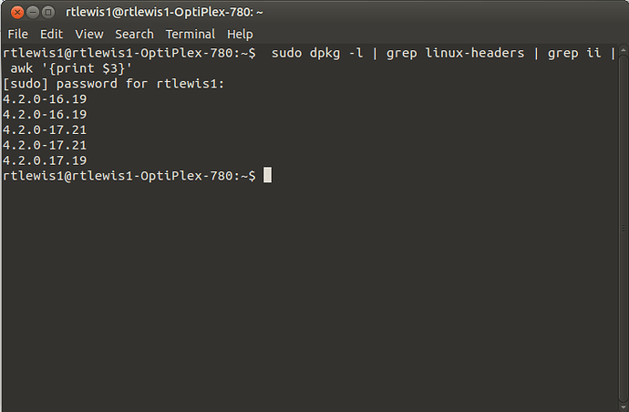 Okay, dumb Newbie question now: Based on the terminal and Synaptic PM kernel info, this is what I have installed: 4.2.0-16.19, 4.2.0-17.19, and 4.2.0-17.21. My question is: do I have one, two, or three kernels installed?