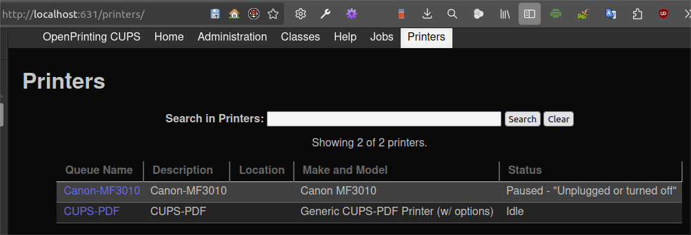 printer HL5050-parallel is idle. enabled since Thu 09 Oct 2025 07:54:53 PM EDT