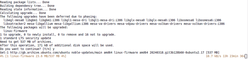 Ign:1 http://ca.archive.ubuntu.com/ubuntu plucky-updates/main amd64 linux-firmware amd64 20250317.git1d4c88ee-0ubuntu1.6