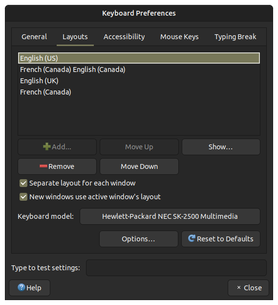 org.mate.peripherals-keyboard-xkb.kbd layouts ['us', 'ca', 'ca', 'ca']