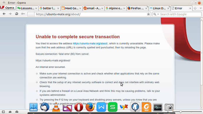 I cannot view or log into ubuntu mate website from opera browser. I have attached the screen shot. it seems to be strange when i can log from firefox without any issue.