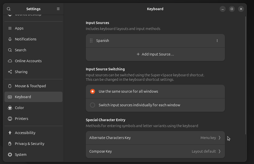 If you’re still having trouble entering special characters, you could try checking the box for Right-Alt under this entry and see whether that now allows you to enter (compose) special characters.