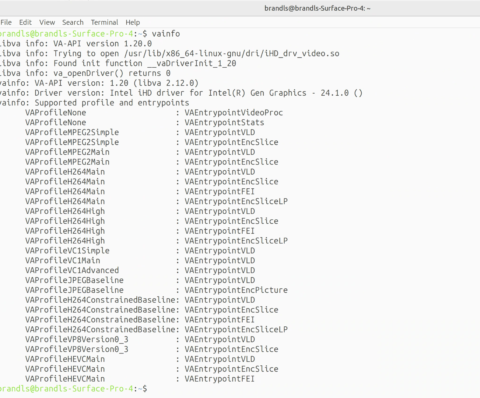 Agreed. This had to have been some kind of VAAPI issue. I was getting the correct driver for the Surface Pro 4 iGPU