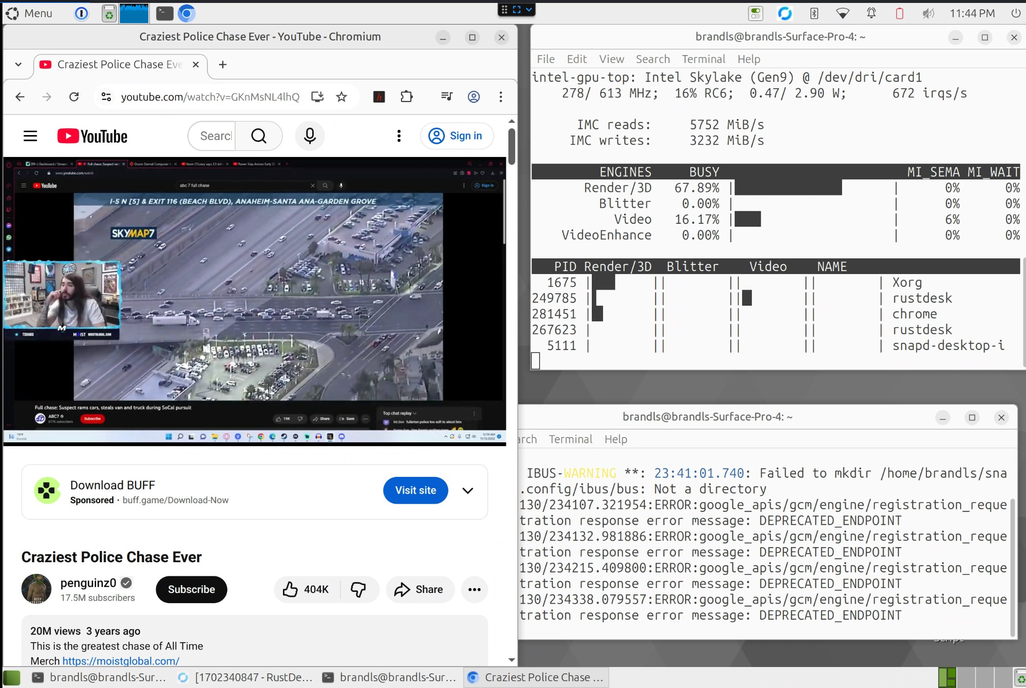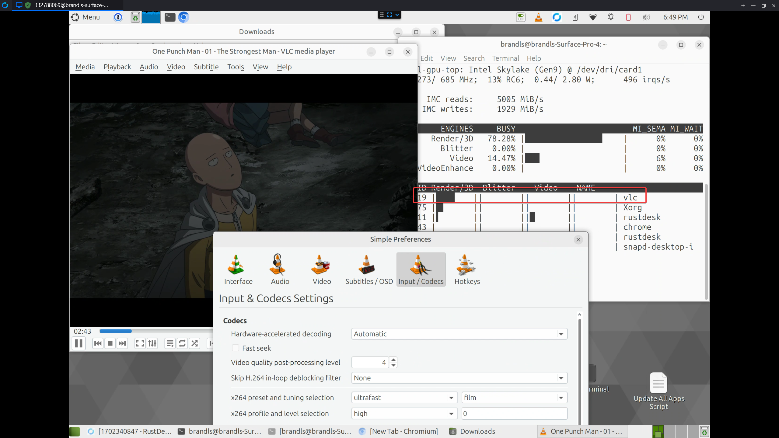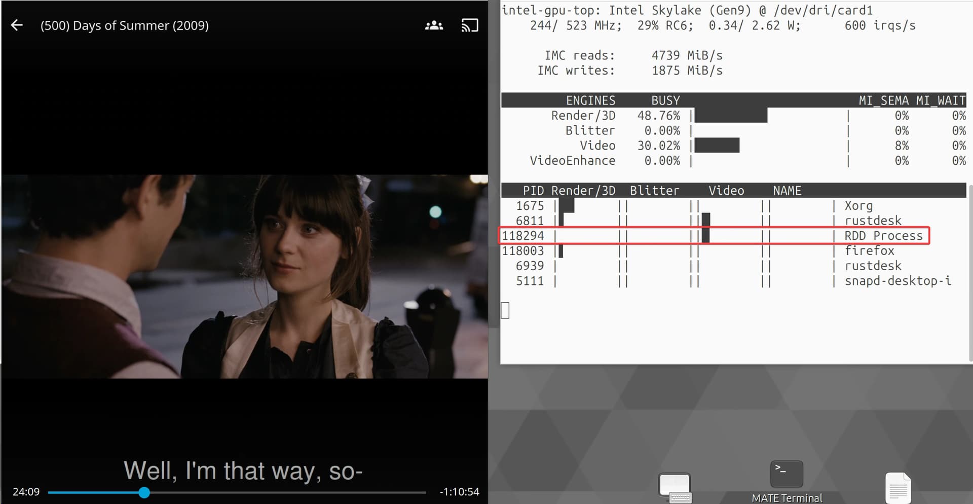 I tried watching a movie off jellyfin and I got to see some video action from “RDD Process” not sure what that is. Usually this would be a direct stream from the server. Still choppy and laggy though…