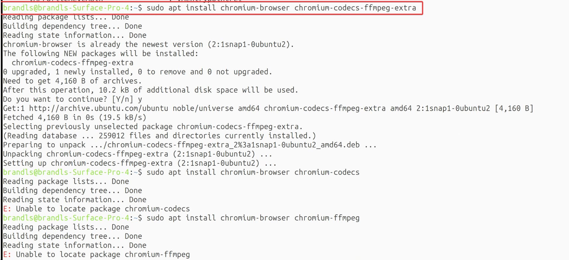 I reckon you're onto something. Just to add that on 24.04 chromium is deployed as a snap - and I think the package needed is chromium-ffmpeg - but I havent tested myself.