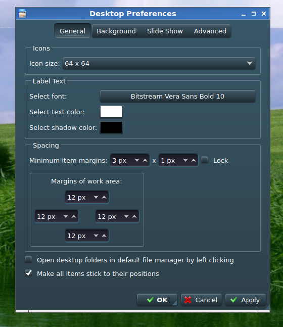Are the desktop icons locked into a rigid formation or can you move them to arbitrary positions?