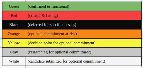 and each cell colour-coded to reflect the status of the inclusion determination for that build, such as (for example),