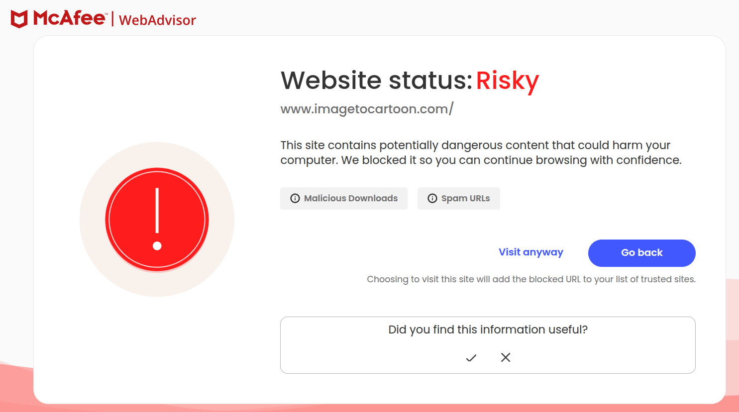 I gave it a try and got this. I don’t get this from any of my other AI sites so am heeding the warning and staying away till the site gets it fixed. Just passing on Friends, not stating it is or isn’t safe.