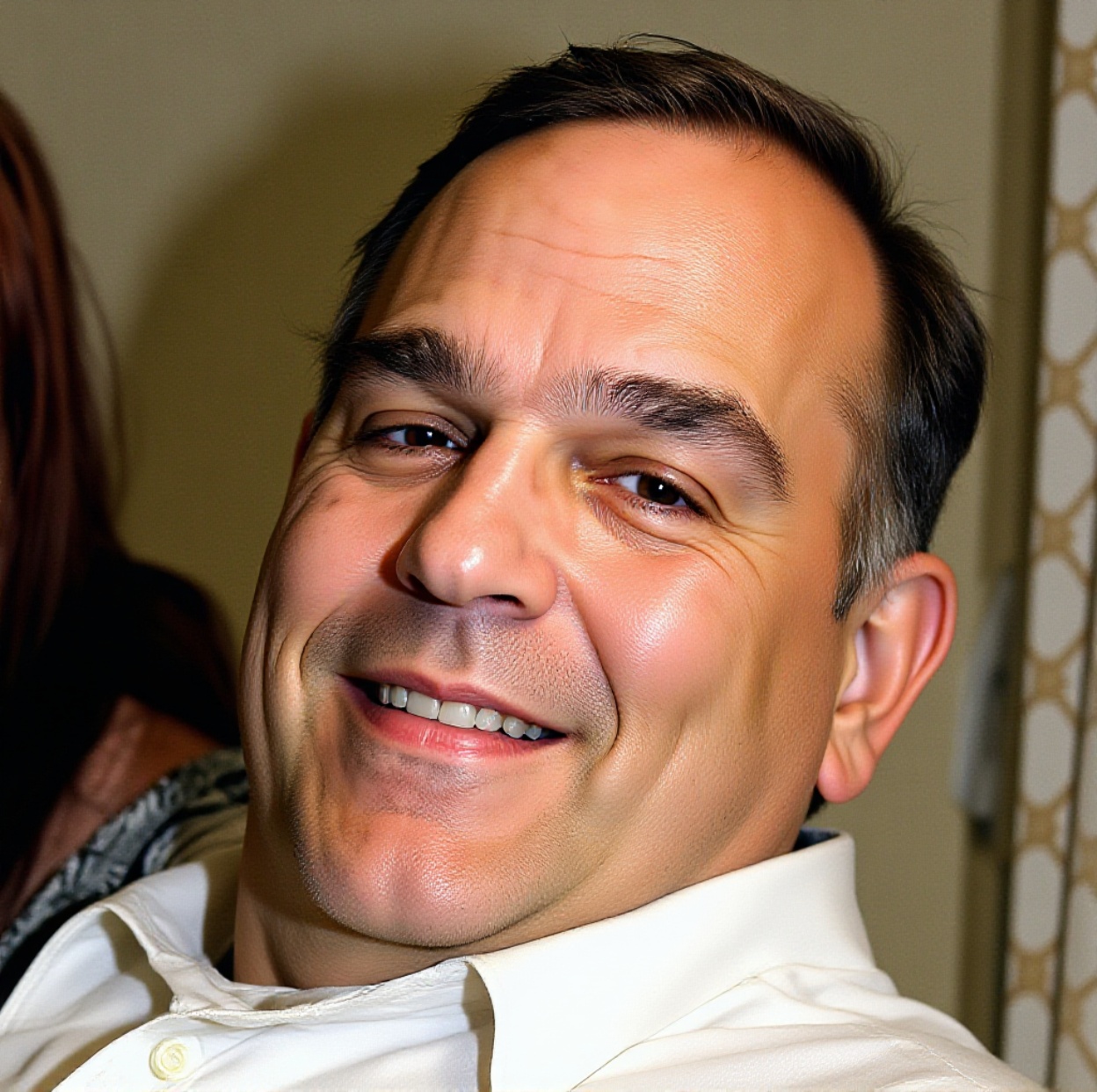 (fairly close re-imagining, without being identical, but in line with my true image; of course, given my age of 70, there should be more gray in my hair and eyebrows)