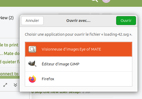 When opening a file from Firefox’s download list, I get the “Open With..” dialog of Gnome3 instead of the MATE one. I didn’t find why, and how to configure a different behavior.